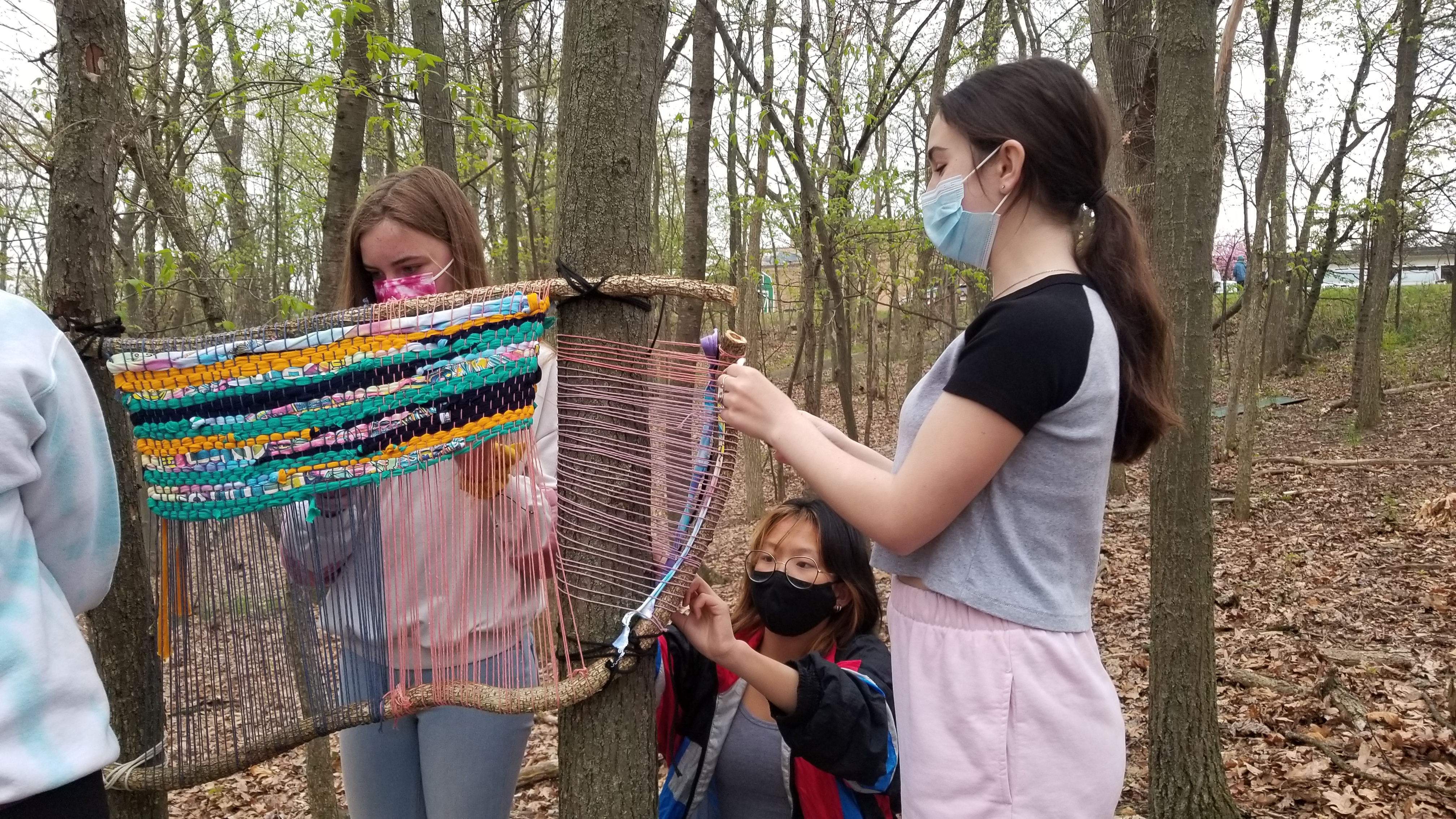 An example of this mission took place in the spring of 2021. The woods at Forest Hills Central Middle School are used by students and community members alike as they travel from their suburban neighborhoods to the school grounds. The woods are overrun with several invasive plant species, which are deteriorating the health of the woods. Invasive plant species outcompete and reduce the number of native plants, and as a result reduce the number of native plants available to wildlife and thus lower the overall value or biodiversity of the area. FHPS teachers Lea Sevigny and Caitlyn Tetreault led their students through a unique artistic experience, Invasive Species Forest Weaving. The goal of the unique artistic experience was to remove invasive bittersweet, have students learn about the negative effects of invasive bittersweet as well as teach neighbors about what they can do about invasive bittersweet on their properties.