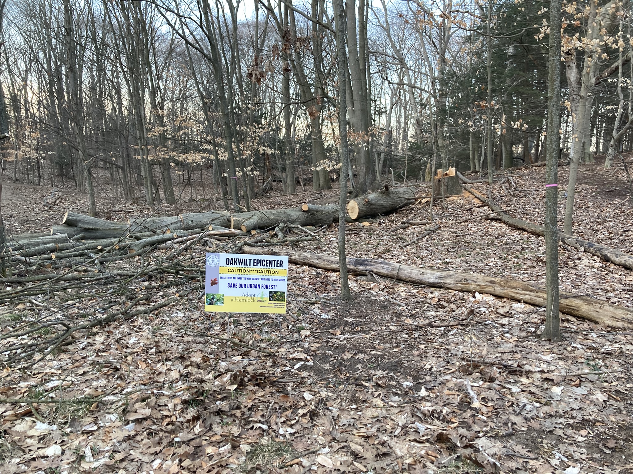 Adopt-a-Hemlock has begun implementing treatments and created a more complete forest management plan. The primary project for 2023 is getting ahead of the existing oak wilt epicenters. Adopt-A-Hemlock has raised over $20,000 and treated three epicenters (more than 30 oak trees).